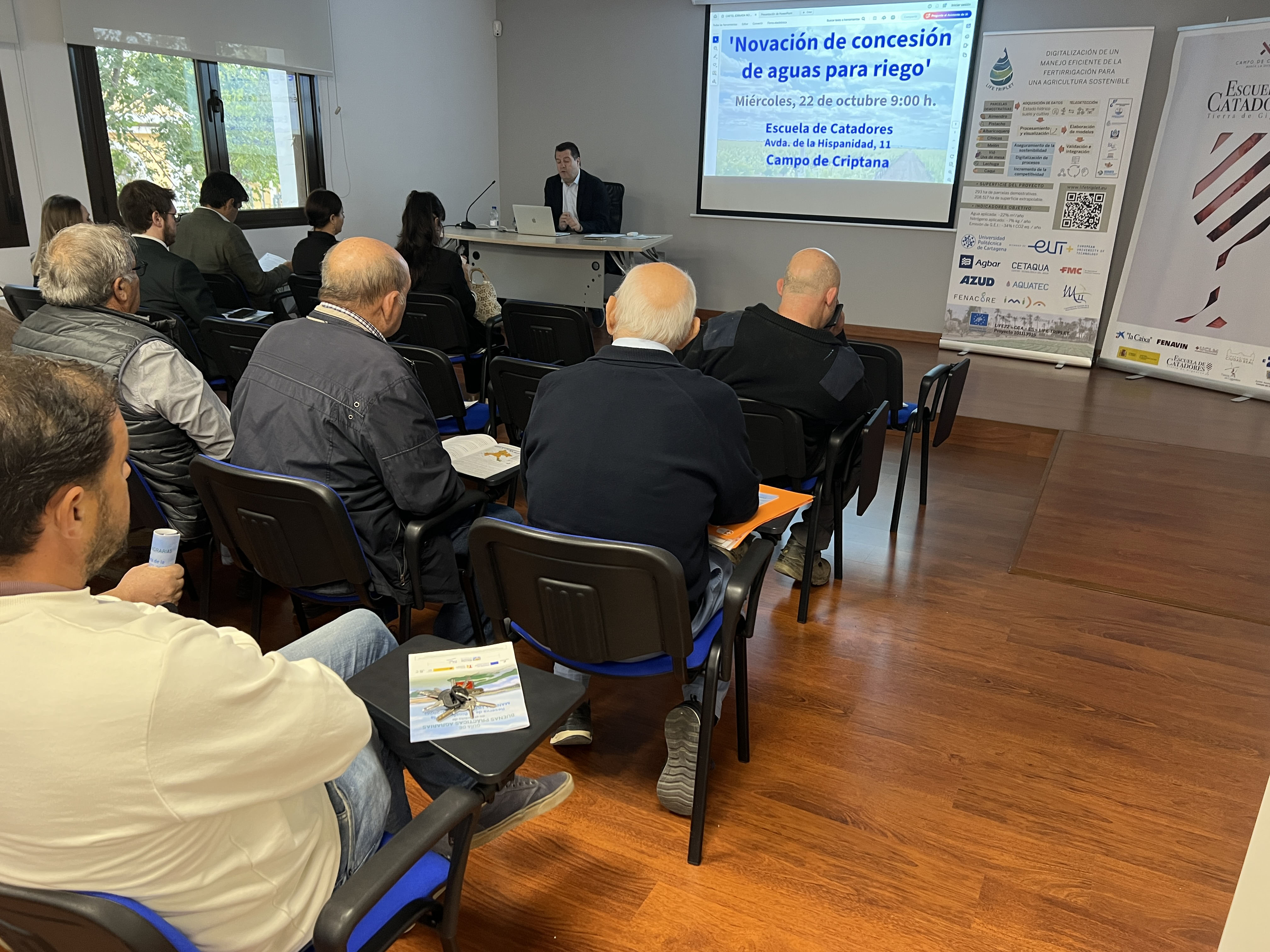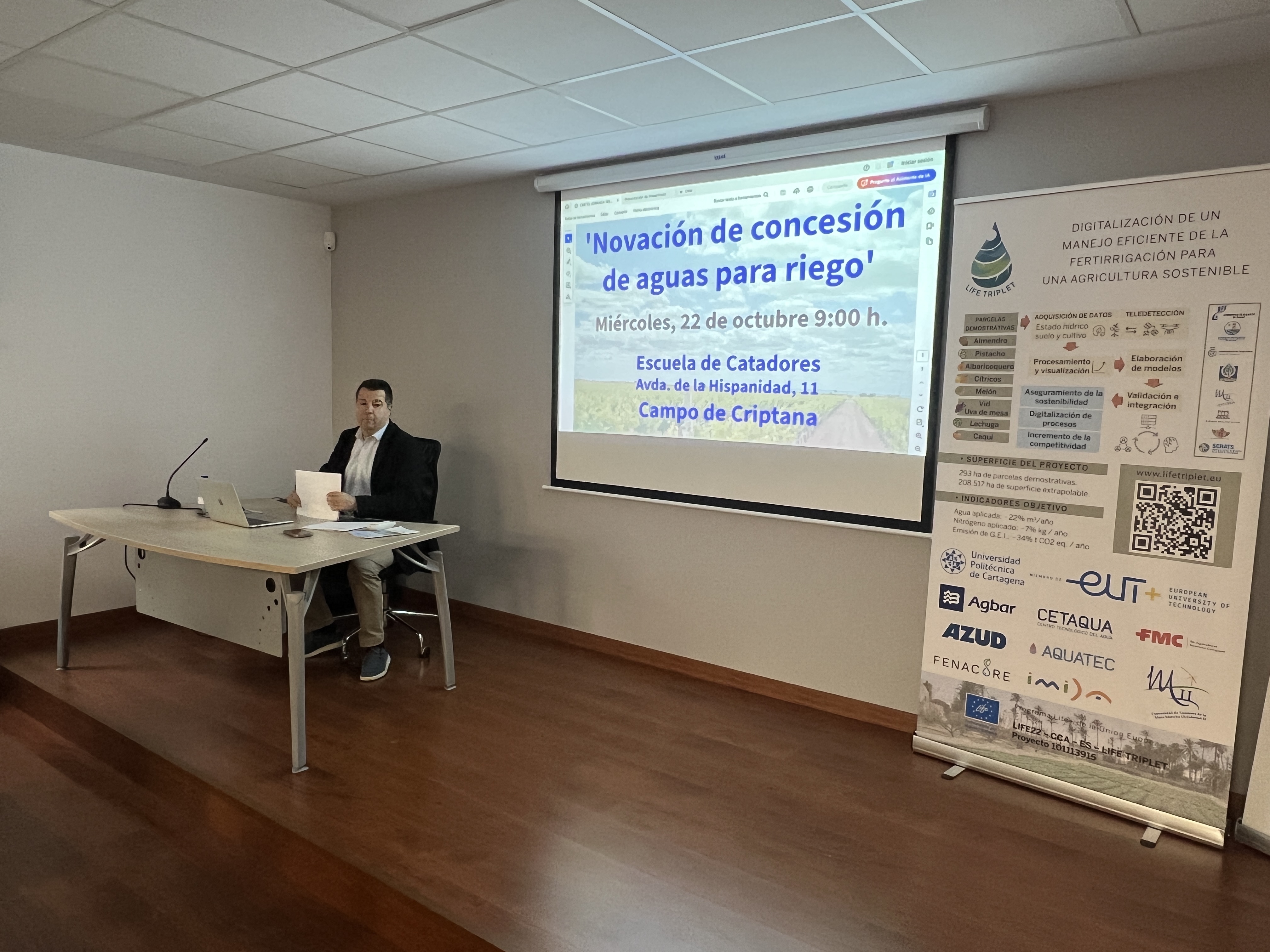 Antonio Alcaide, director de la Comunidad de Usuarios de Aguas Subterráneas (CUAS) Mancha Occidental II, socio del proyecto LIFE TRIPLET, ha presentado esta iniciativa europea a medio centenar de agricultores y agricultoras manchegos durante un curso sobre riego desarrollado en la Escuela de Catadores de Campo de Criptana (Ciudad Real).